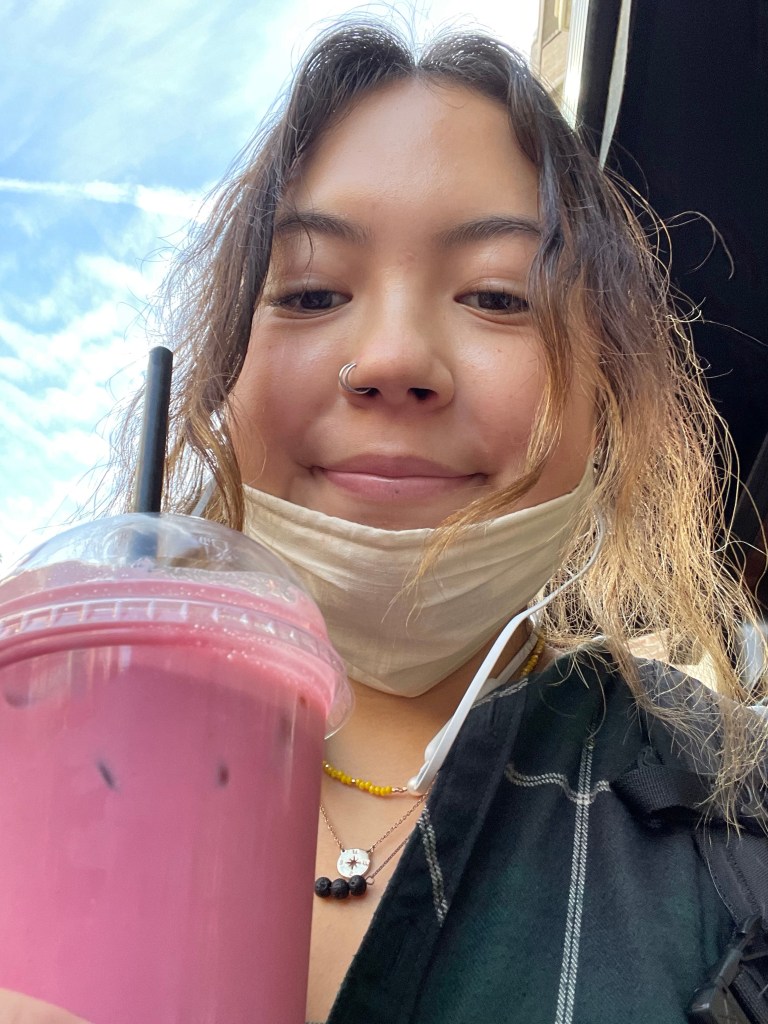 I do believe that the quality of my morning coffee is an indicator for the quality of my day. I was so happy drinking this pink coffee- they even gave me a complimentary mini muffin! It was such a great find.