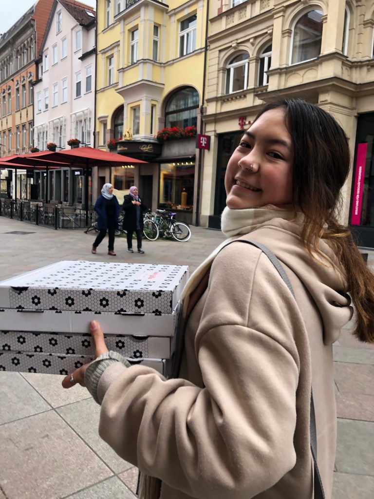 Then we went to Lisa’s flat and had some tea with her flat mates as well. We said our goodbyes and I headed to anni’s flat to wait for her to be done at her garden. Since it was AnnaLena and Lara’s last day in Göttingen, we all got vegan pizza and had a nice early dinner together before saying bye.