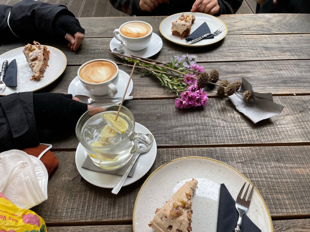 We then biked to a garden Anni shares and harvests vegetables at. Anni stayed at the garden while me, Lara, and AnnaLena went to a cafe AnnaLena works at. She claimed that they had the best carrot cake ever- and I agree! Especially for being vegan, it was very good. We all sat at the cafe with other friends, Lisa and Tom, and had great funny conversations.